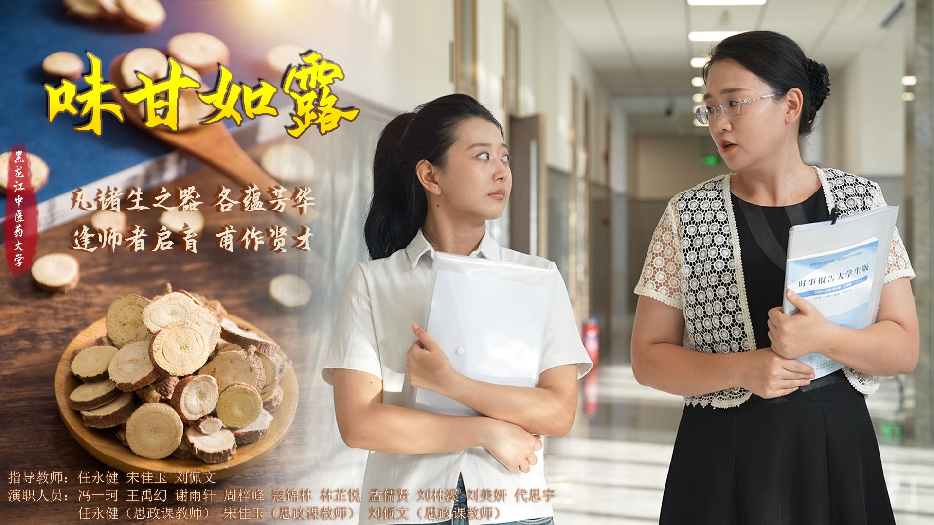 微电影作品《味甘如露》由冯一珂、王禹幻、谢雨轩、周梓峰、寇锦林、林芷悦、孟儒贤、刘林溪、刘美妍、代思宇等同学参与创作完成。影片以2012级中医学定向医学生曲金同学的真实经历为原型,以甘草“味甘如露 ”为喻,展现中医学子在思政课教师与专业课教师的引导下,如甘草般扎根贫瘠、润泽乡村的成长历程。